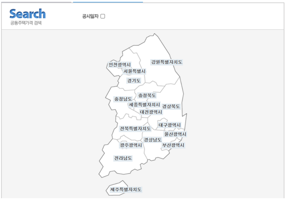 - 메인 화면에서 ‘공시지가 조회’ 클릭: 상단 메뉴에서 ‘공시지가 조회’를 선택합니다.