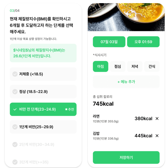 1일 8,000보 이상 걷기 식사 메뉴와 섭취 칼로리 기록 건강 콘텐츠 학습 등