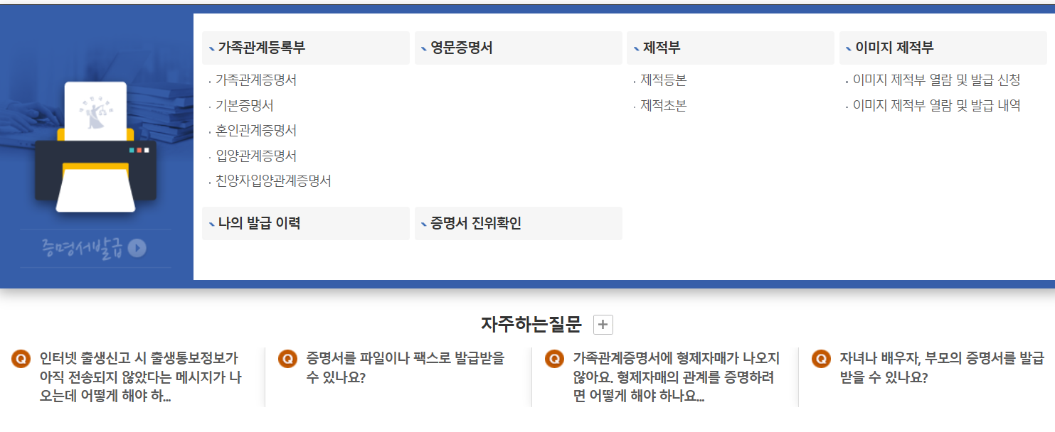 가족관계증명서 인터넷발급 방법