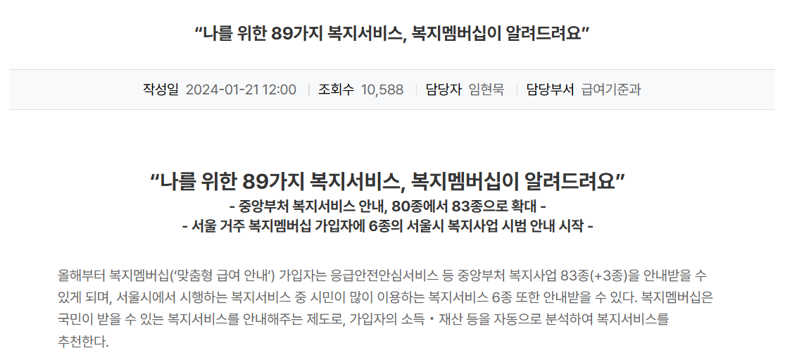 - 정부24, 복지로 등과 연계된 간편 신청 시스템