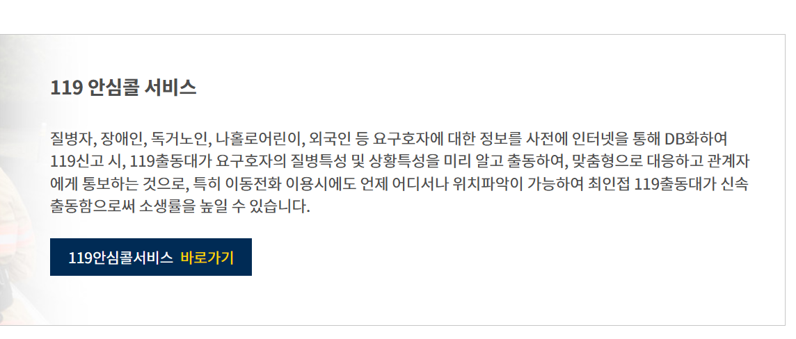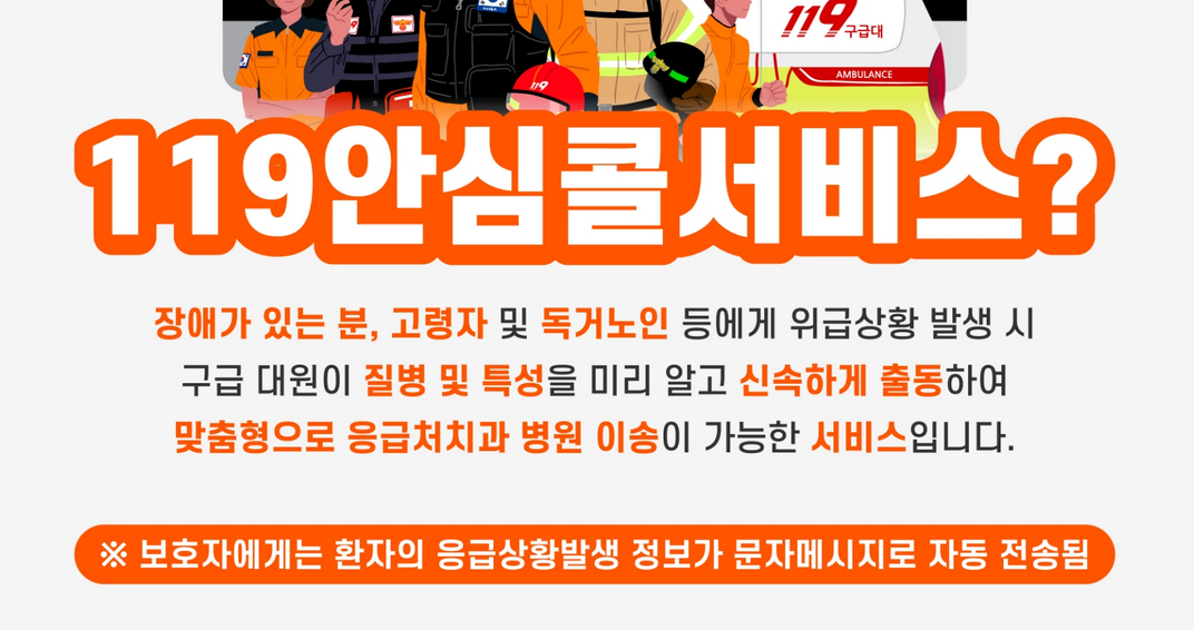 당신과 가족의 생명을 지키는 119안심콜 서비스, 오늘 바로 등록하세요.