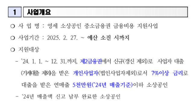 - 연 매출 5천만 원 이하 소상공인 (2024년 매출기준)