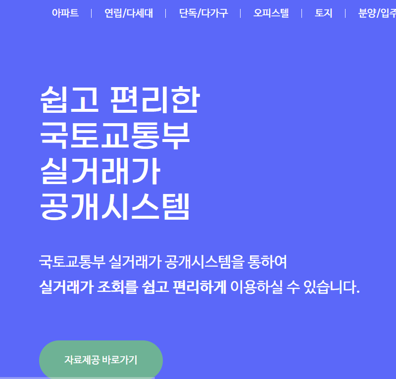 국토교통부 실거래가 공개시스템은 매매나 전월세 계약이 체결될 때, 실거래 내용을 국토부에 신고하고 이를 대국민에게 투명하게 공개하는 서비스입니다.