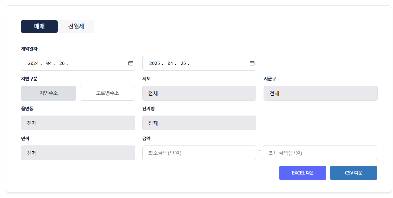 이 시스템을 통해 지역별, 단지별, 기간별로 실제 거래된 금액을 확인할 수 있어 시세 예측이나 투자 판단의 근거 자료로 유용하게 활용됩니다.