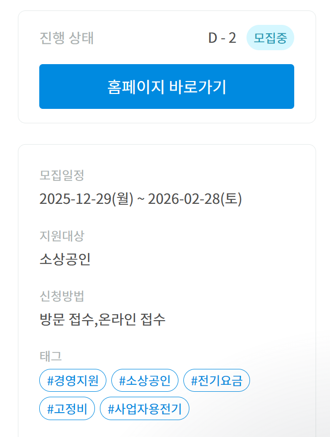 특히 이번 포천시전기요금지원 사업은 개인사업자뿐 아니라 일정 요건을 충족하는 법인사업자도 포함하고 있어 대상 범위가 비교적 넓습니다. 연매출 3억원 이하 사업체라면 신청 자격을 검토해보시는 것이 좋습니다.