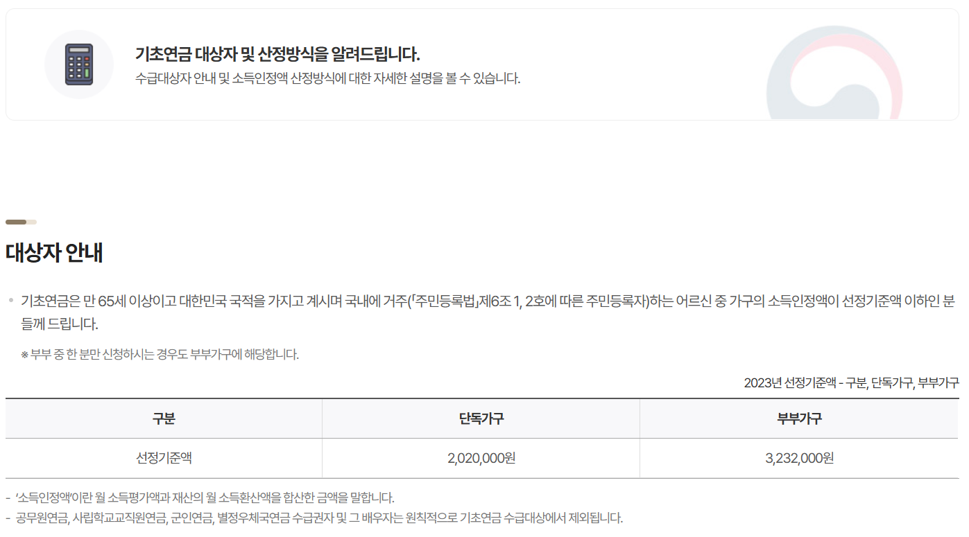 기초연금은 다음 조건에 해당하는 분들에게 기준연금액을 기반으로 산정됩니다.