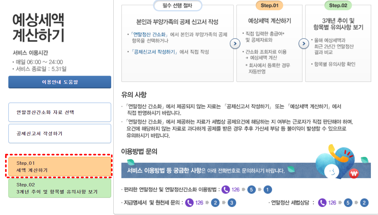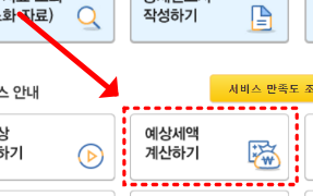 메뉴에 보면 '예상세액 계산하기' 버튼이 있습니다. 예상세액 계산하기를 눌러줍니다.