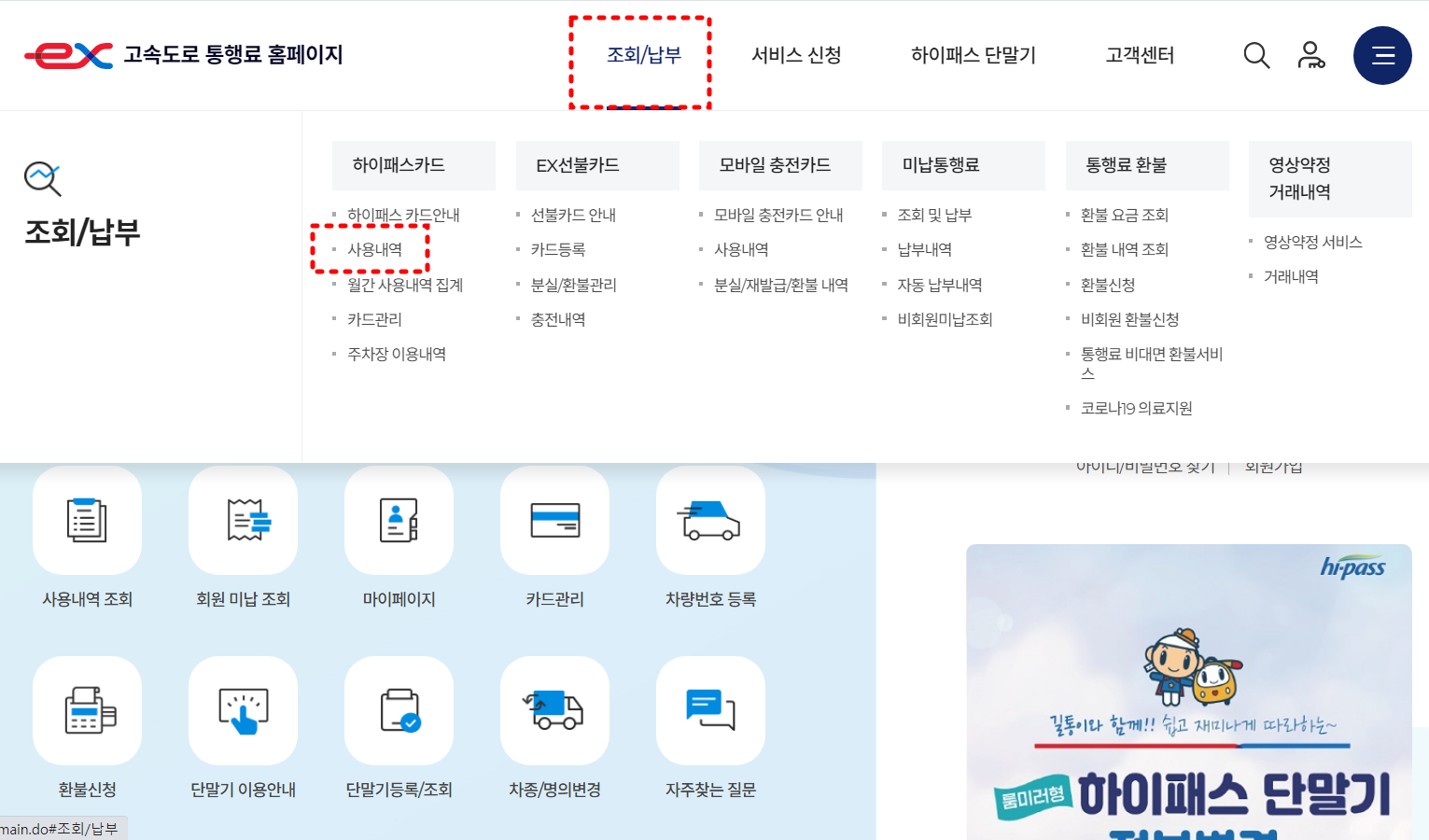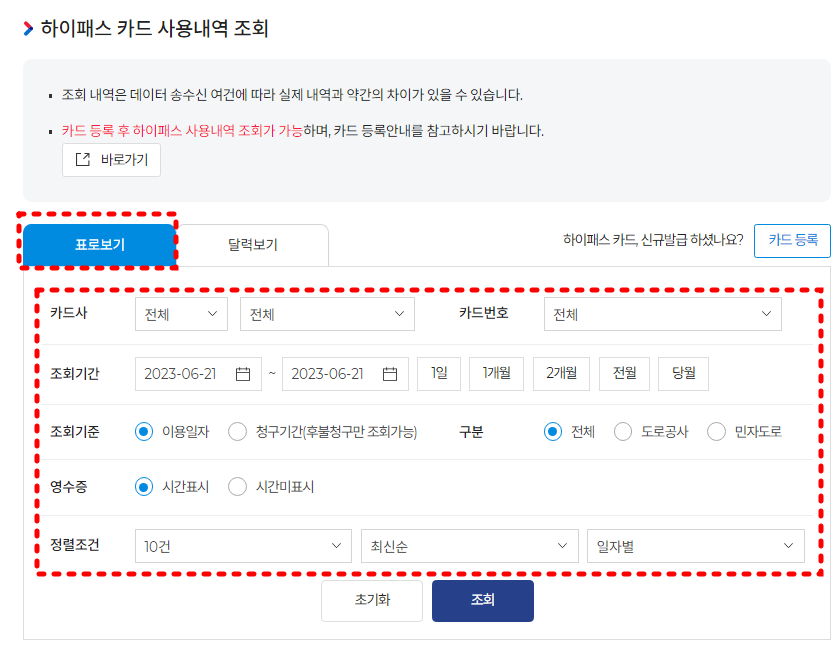 하이패스 사용내역 조회