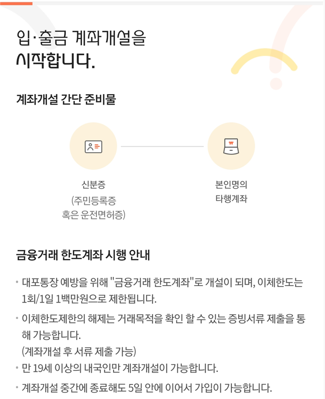 - 계좌개설 시 20일 제한에 걸릴 수 있으므로 유의해야 한다