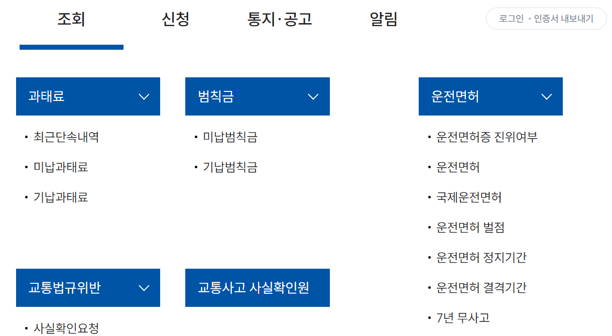 교통신호위반 과태료 및 범칙금, 신호위반 사실확인과 함께 운전면허와 관련된 민원도 처리 가능하니 많은 이용 바랍니다. 사이트 주소는 https://efine.go.kr 입니다.