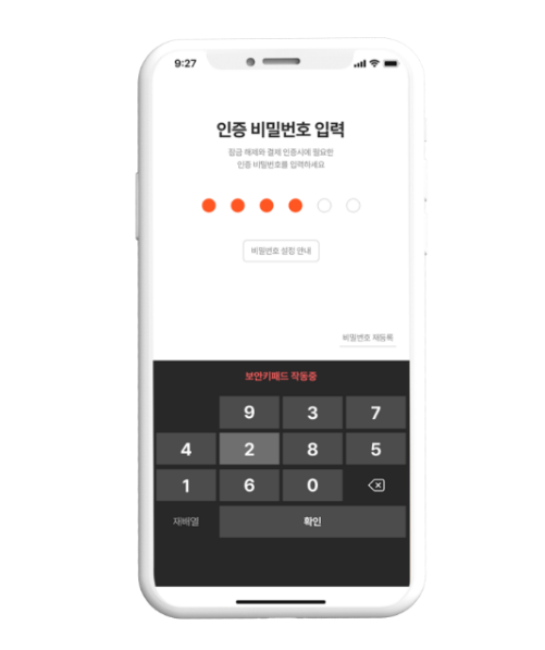 링크를 통해 앱을 다운로드 받고, 본인인증 후 회원가입을 해 줍니다.회원가입 시 약관동의 및 본인인증을 진행해 주세요.잠금 해제와 결제시에 필요한 인증비밀번호 6자리를 설정해 줍니다.