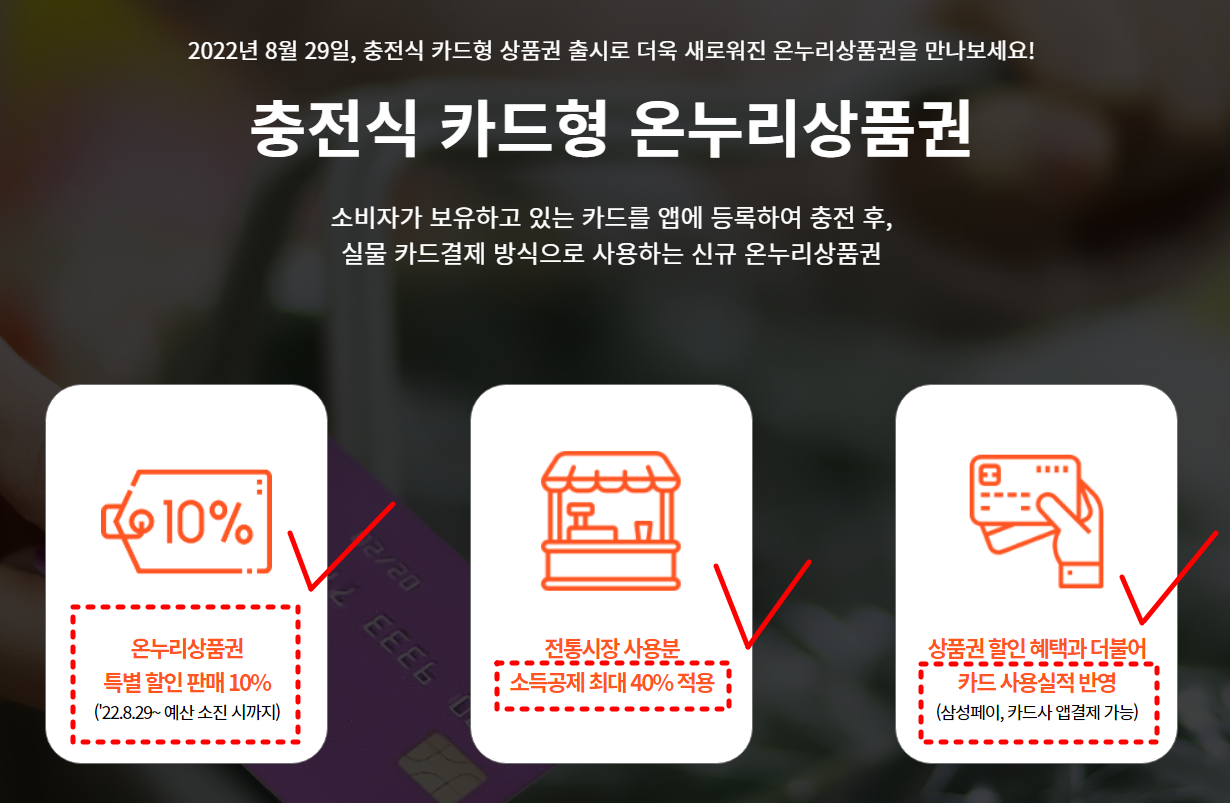 온누리상품권 판매처 중 지류형, 모바일형은 5%할인을 해 주고 있으며,✅충전식 상품권 구매시에만 10% 할인혜택이 있습니다.