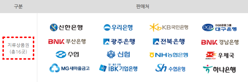 지류상품권 판매처는 신한은행, 우리은행, 국민은행 등 은행 및 우체국에서 판매하고 있습니다.