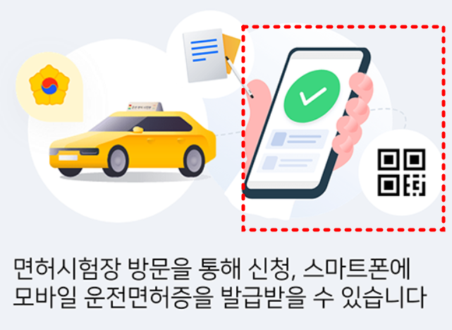운전면허증시험장에 가면 모바일 운전면허증 발급을 위한 QR코드가 비치되어 있으며, 위에서 다운받은 스마트폰 앱을 통해 촬영하면 모바일 운전면허증 발급이 완료됩니다.
