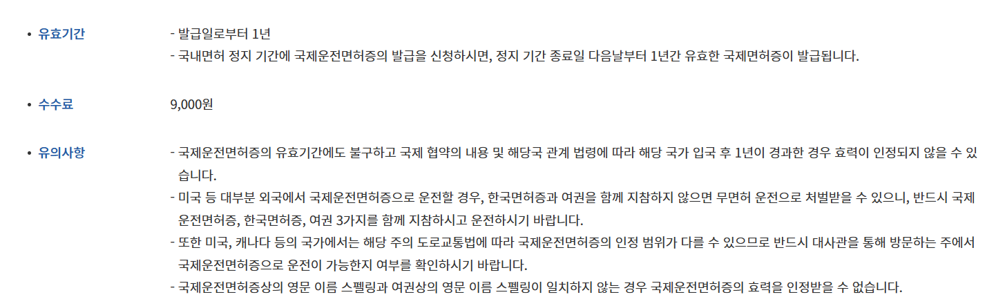국제운전면허증은 발급일로부터 1년간 유효합니다.