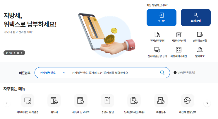 - 회원가입 및 로그인: 기존 위택스 아이디로 로그인하거나 회원가입을 진행합니다.