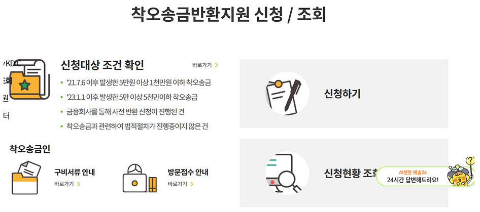 착오송금 반환지원 제도는 송금인이 실수로 잘못 송금한 돈을 예금공사가 대신 찾아주는 서비스입니다. 예금공사의 사이트를 이용하면 소송 없이도 간단히 반환 신청을 진행할 수 있습니다.